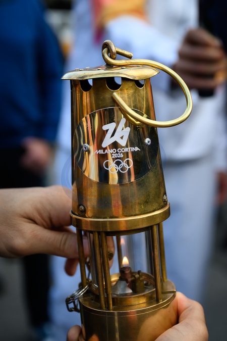 The Olympic Torch passes through Pontedera, the city of motors for the Milan Cortina 2026 Winter Olympics . Pontedera, Italy 11 December 2025, Credit:Stefano Dalle Luche / Avalon