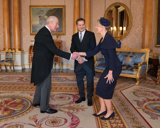 Teemu Turunen, Ambassador from the Republic of Finland, accompanied by his wife, Lotta Mäki-Turunen, presents his credentials to King Charles III during a private audience at Buckingham Palace, London. Picture date: Thursday December 11, 2025., Credit:Yui Mok / Avalon
