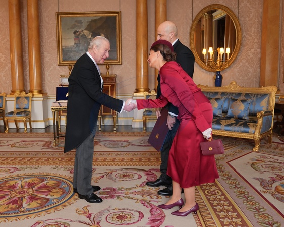 Ashraf Swelam, Ambassador from the Arab Republic of Egypt, accompanied by his wife, Jumana Shehata, presents his credentials to King Charles III during a private audience at Buckingham Palace, London. Picture date: Thursday December 11, 2025., Credit:Yui Mok / Avalon