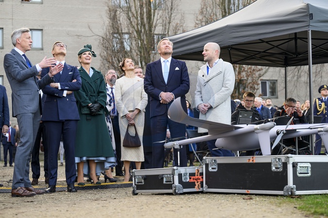 Amsterdam, The Netherlands, 2025-12-11 11:20:54AMSTERDAM, 11-12-2025, Marineterrein State visit of the President of Finland, Alexander Stubb, to the Netherlands. He is accompanied by his wife, Suzanne Innes-Stubb. At the Marineterrein (MEA), the Royal Couple, the Finnish President, and Mrs. Innes-Stubb will visit the Amsterdam Drone Lab, where they will learn about the use of drones for various civilian purposes, with relevance to the energy and defense sectors. Students and instructors will discuss topics including Defensity College. PHOTO: NLBeeld/Patrick van Emst, Credit:Avalon