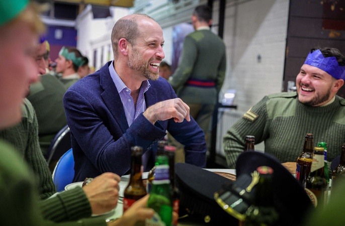 09/12/2025, Windsor, UK. The Prince of Wales with members of the Prince of Wales Company in the 1st Battalion Welsh Guards while they enjoy Christmas dinner at their barracks in Windsor., Credit:Pete Maclaine / Avalon