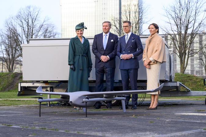 Amsterdam, The Netherlands, 2025-12-11 11:29:40AMSTERDAM, 11-12-2025, Marineterrein State visit of the President of Finland, Alexander Stubb, to the Netherlands. He is accompanied by his wife, Suzanne Innes-Stubb. At the Marineterrein (MEA), the Royal Couple, the Finnish President, and Mrs. Innes-Stubb will visit the Amsterdam Drone Lab, where they will learn about the use of drones for various civilian purposes, with relevance to the energy and defense sectors. Students and instructors will discuss topics including Defensity College. PHOTO: NLBeeld/Patrick van Emst, Credit:Avalon