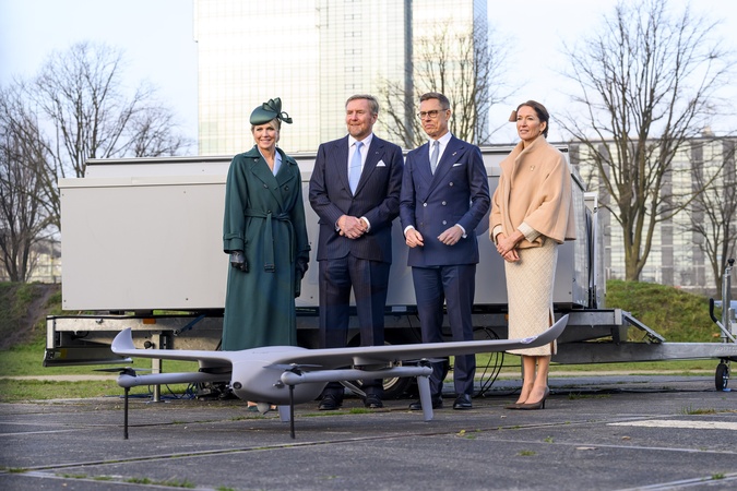 Amsterdam, The Netherlands, 2025-12-11 11:29:35AMSTERDAM, 11-12-2025, Marineterrein State visit of the President of Finland, Alexander Stubb, to the Netherlands. He is accompanied by his wife, Suzanne Innes-Stubb. At the Marineterrein (MEA), the Royal Couple, the Finnish President, and Mrs. Innes-Stubb will visit the Amsterdam Drone Lab, where they will learn about the use of drones for various civilian purposes, with relevance to the energy and defense sectors. Students and instructors will discuss topics including Defensity College. PHOTO: NLBeeld/Patrick van Emst, Credit:Avalon