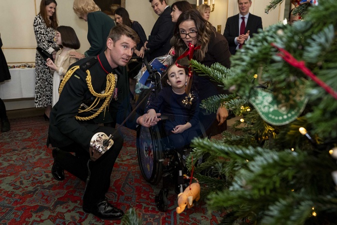 Major Rob Treasure helps decorate the Christmas tree using his sword during an event supported by Helen and Douglas House and Roald Dahl's, Marvellous Children's Charity, at Clarence House in London. Picture date: Thursday December 11, 2025., Credit:Aaron Chown / Avalon
