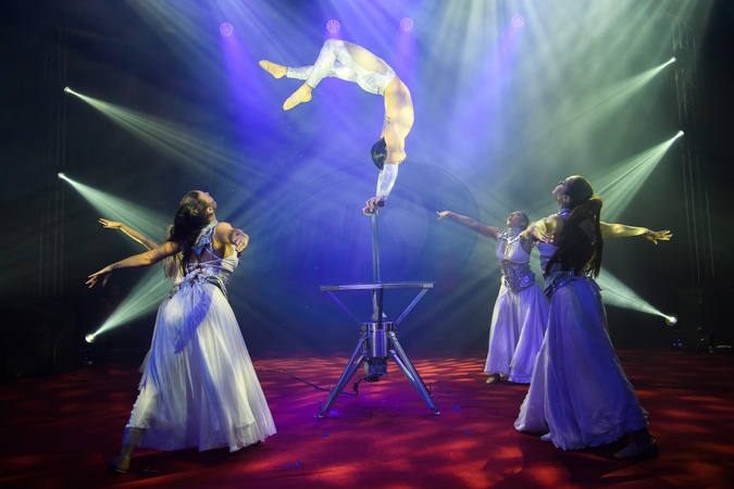 An acrobat performs at a photocall for Winter Funland which runs from 13th December 2025 - 4th January 2026 at Olympia London in London, England, UK on Friday 12 December, 2025., Credit:Justin Ng / Avalon