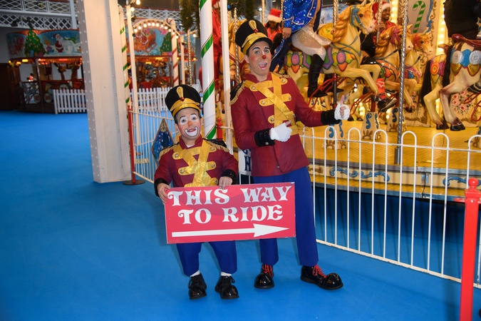 Performers on the merry go round at a photocall for Winter Funland which runs from 13th December 2025 - 4th January 2026 at Olympia London in London, England, UK on Friday 12 December, 2025., Credit:Justin Ng / Avalon