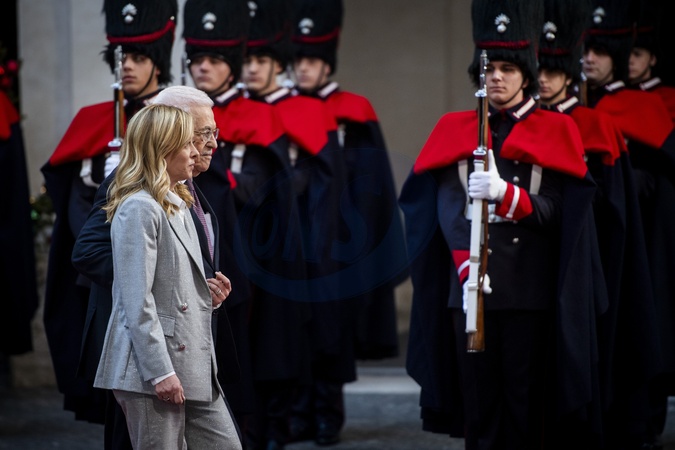 Prime Minister Giorgia Meloni receives Palestinian President Mahmoud Abbas at Palazzo Chigi. Rome, Italy 12 December 2025, Credit:Alessandro Serrano' / Avalon