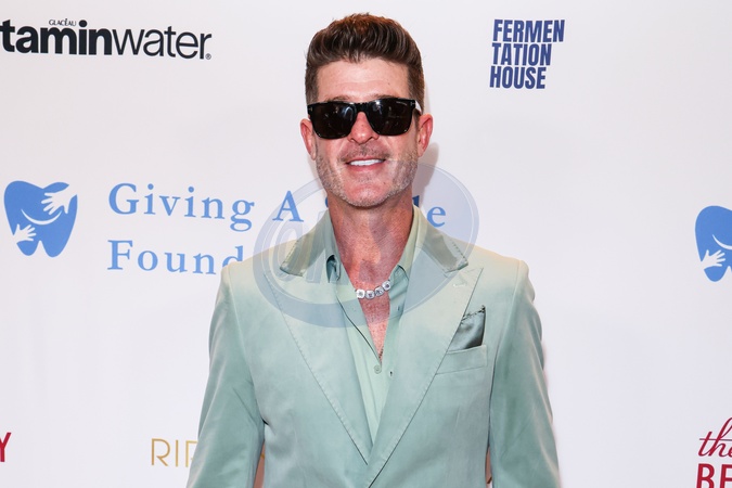 BEVERLY HILLS, LOS ANGELES, CALIFORNIA, USA - DECEMBER 11: American singer, songwriter, and record producer Robin Thicke arrives at the Giving A Smile Foundation Inaugural Gala 2025 held at The Beverly Hilton Hotel on December 11, 2025 in Beverly Hills, Los Angeles, California, United States., Credit:Xavier Collin / Avalon