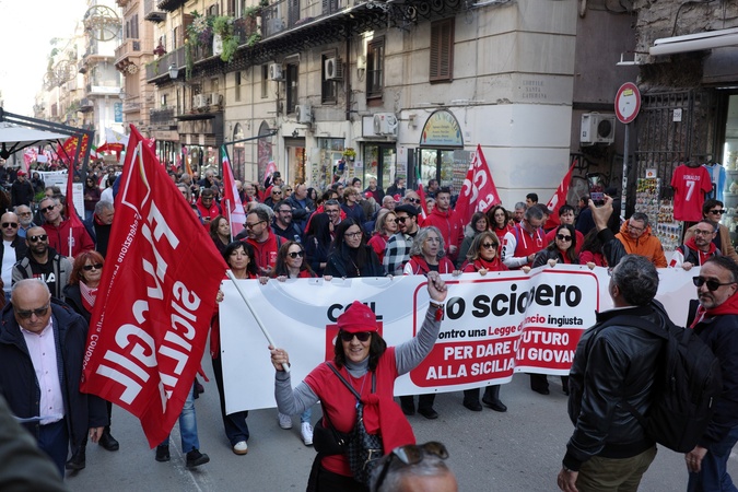 Protesters march through the city center during the national general strike called by the CGIL against the budget law. Palermo, Italy 12 December 2025, Credit:Christian Bonaviri / Avalon