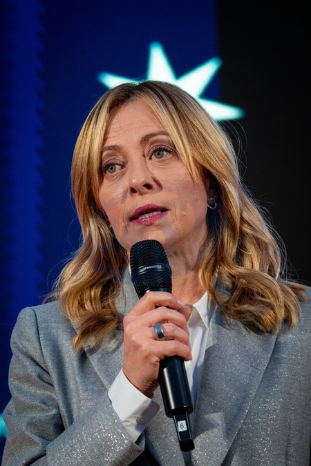 President of Palestine, Mahmoud Abbas, aka Abu Mazen, attends the Atreju political meeting organized by the young militants of Italian right-wing party Brothers of Italy (Fratelli d'Italia) near Castl Sant’Angelo in Rome., Italy on 12 December 2025.
