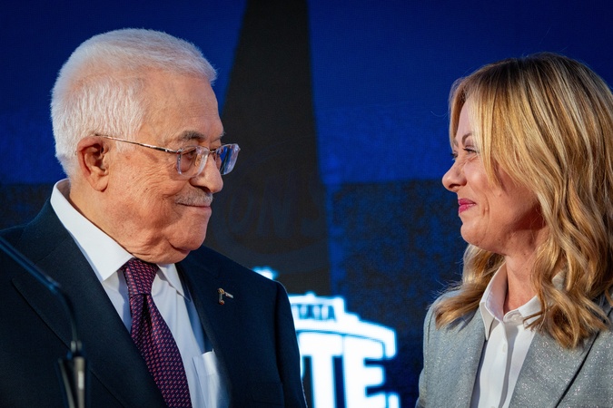 President of Palestine, Mahmoud Abbas, aka Abu Mazen, attends the Atreju political meeting organized by the young militants of Italian right-wing party Brothers of Italy (Fratelli d'Italia) near Castl Sant’Angelo in Rome., Italy on 12 December 2025.