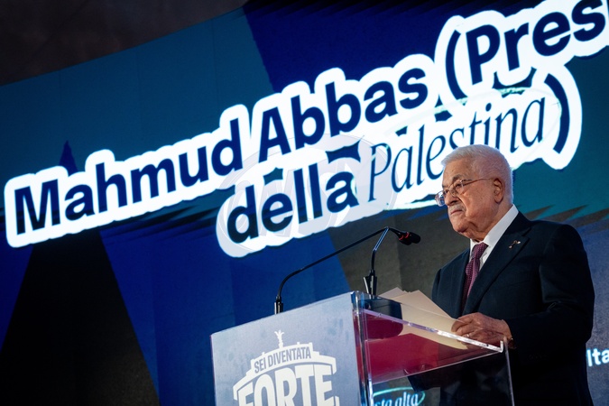 President of Palestine, Mahmoud Abbas, aka Abu Mazen, attends the Atreju political meeting organized by the young militants of Italian right-wing party Brothers of Italy (Fratelli d'Italia) near Castl Sant’Angelo in Rome., Italy on 12 December 2025.