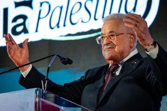 President of Palestine, Mahmoud Abbas, aka Abu Mazen, attends the Atreju political meeting organized by the young militants of Italian right-wing party Brothers of Italy (Fratelli d'Italia) near Castl Sant’Angelo in Rome., Italy on 12 December 2025.