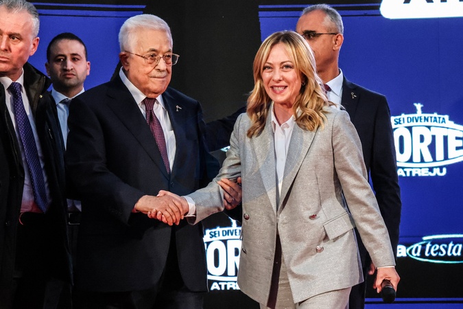 Atreju, demonstration of the Italian right, in the photo the Prime Minister Giorgia Meloni and the President of Palestine Mahmud Abbas . Rome, Italy 12 December 2025, Credit:Francesca Bolla / Avalon