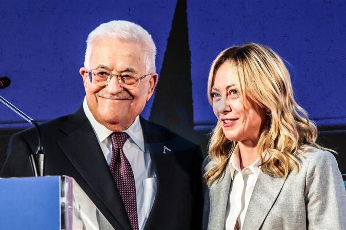 Atreju, demonstration of the Italian right, in the photo the Prime Minister Giorgia Meloni and the President of Palestine Mahmud Abbas . Rome, Italy 12 December 2025, Credit:Francesca Bolla / Avalon