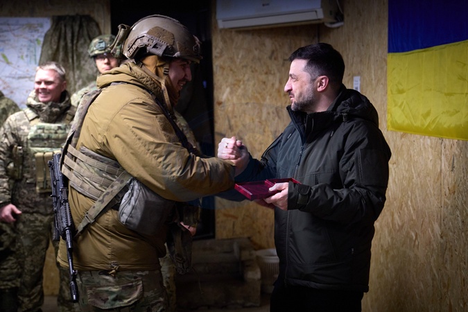 President of Ukraine Volodymyr Zelenskyy meets with soldiers on the Day of the Land Forces