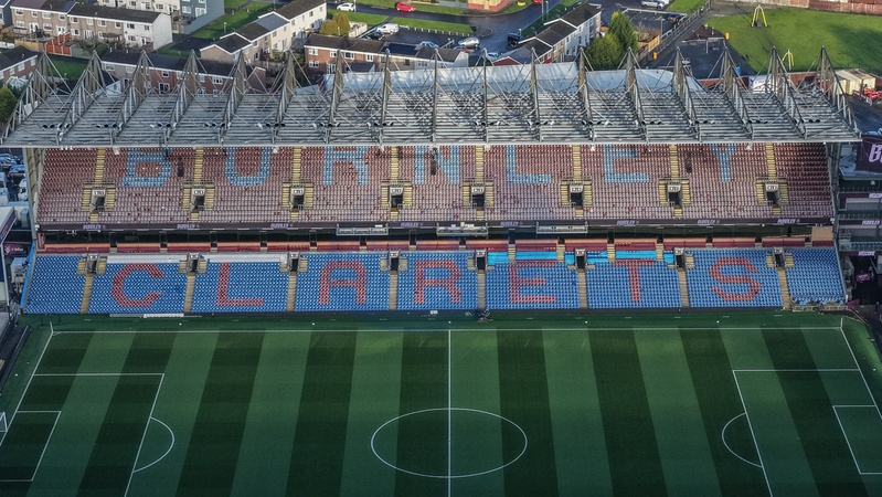 A general aerial view of Turf Moor during the Premier League match Burnley vs Fulham at Turf Moor, Burnley, United Kingdom, 13th December 2025, Credit:Mark Cosgrove/News Images / Avalon