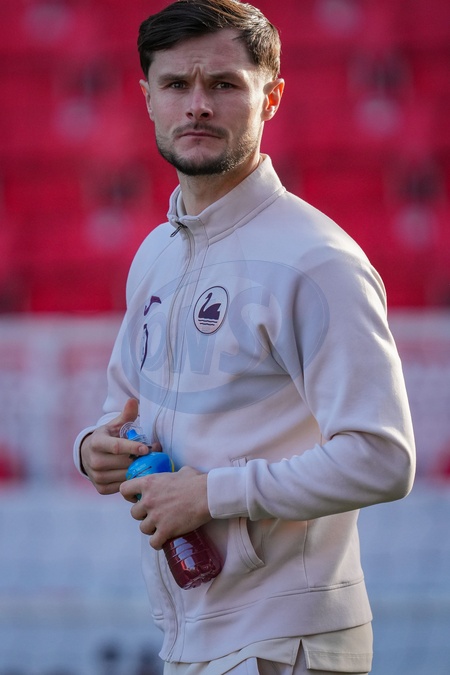 Liam Cullen of Swansea City inspects the pitch during the Sky Bet Championship match Stoke City vs Swansea City at Bet365 Stadium, Stoke-on-Trent, United Kingdom, 13th December 2025, Credit:Maynard Manyowa/News Images / Avalon