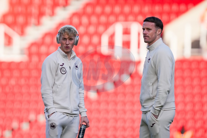Melker Widell of Swansea City and inspects with pitch during the Sky Bet Championship match Stoke City vs Swansea City at Bet365 Stadium, Stoke-on-Trent, United Kingdom, 13th December 2025, Credit:Maynard Manyowa/News Images / Avalon