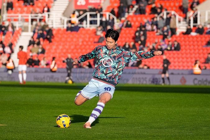 Eom Ji-Sung of Swansea City shoots towards goal during warm ups during the Sky Bet Championship match Stoke City vs Swansea City at Bet365 Stadium, Stoke-on-Trent, United Kingdom, 13th December 2025, Credit:Maynard Manyowa/News Images / Avalon