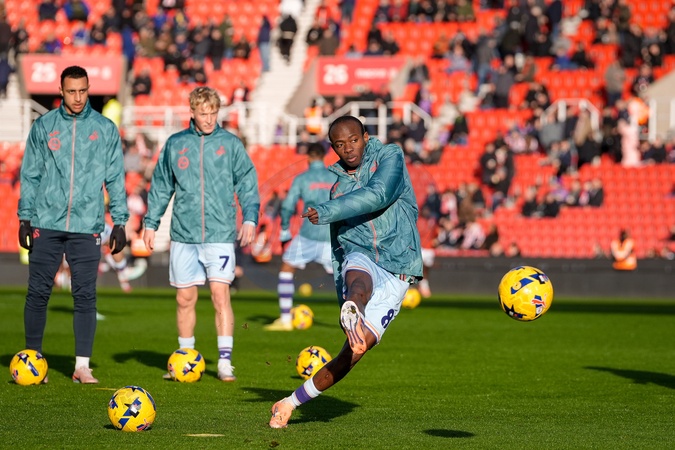 Malick Yalcouyé of Swansea City shoots the ball while warming up during the Sky Bet Championship match Stoke City vs Swansea City at Bet365 Stadium, Stoke-on-Trent, United Kingdom, 13th December 2025, Credit:Maynard Manyowa/News Images / Avalon