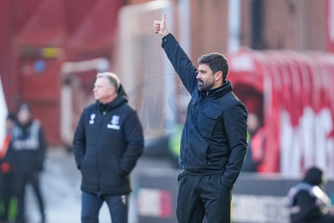 Swansea Manager Vítor Matos gives his team a thumbs up during the Sky Bet Championship match Stoke City vs Swansea City at Bet365 Stadium, Stoke-on-Trent, United Kingdom, 13th December 2025, Credit:Maynard Manyowa/News Images / Avalon