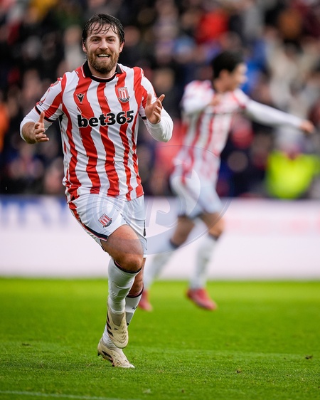 Ben Pearson of Stoke City celebrates his goal to make it 1-0 during the Sky Bet Championship match Stoke City vs Swansea City at Bet365 Stadium, Stoke-on-Trent, United Kingdom, 13th December 2025, Credit:Maynard Manyowa/News Images / Avalon