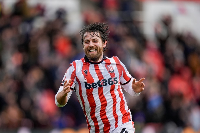 Ben Pearson of Stoke City celebrates his goal to make it 1-0 during the Sky Bet Championship match Stoke City vs Swansea City at Bet365 Stadium, Stoke-on-Trent, United Kingdom, 13th December 2025, Credit:Maynard Manyowa/News Images / Avalon
