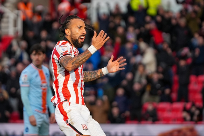 Sorba Thomas of Stoke City celebrates his goal to make it 2-0 during the Sky Bet Championship match Stoke City vs Swansea City at Bet365 Stadium, Stoke-on-Trent, United Kingdom, 13th December 2025, Credit:Maynard Manyowa/News Images / Avalon
