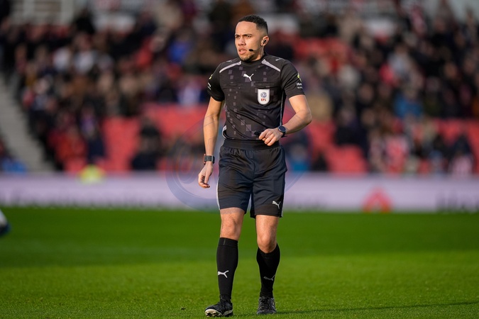 Referee Ruebyn Ricardo during the Sky Bet Championship match Stoke City vs Swansea City at Bet365 Stadium, Stoke-on-Trent, United Kingdom, 13th December 2025, Credit:Maynard Manyowa/News Images / Avalon