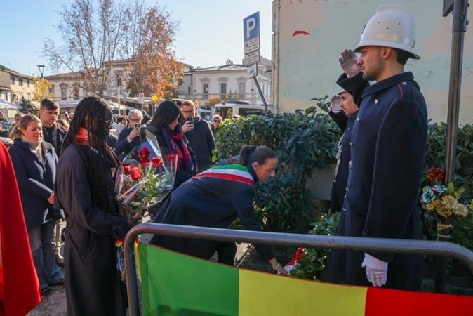 Dalmazia's Square, Commemoration of the Florence massacre of December 13, 2011, in which two Senegalese men, Samb Modou and Diop Mor, were killed by Gianluca Casseri. Pictured is Florence Mayor Sara Funaro. Florence, Italy 13 December 2025, Credit:De Martino Tommaso / Avalon