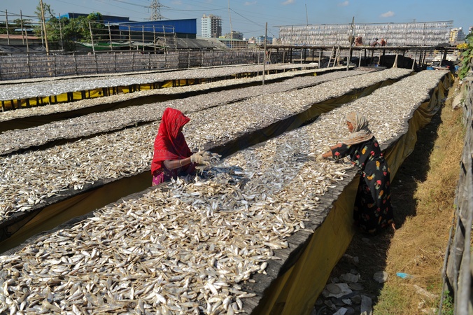 Women Process Dried Fish in Chattogram, Bangladesh