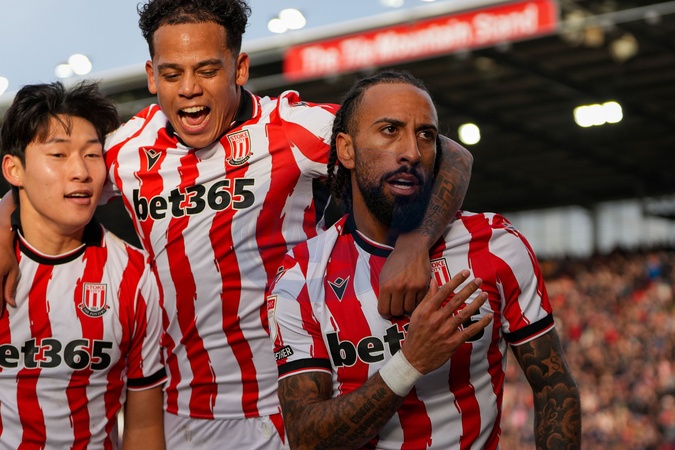 Sorba Thomas of Stoke City celebrates his goal to make it 2-0 during the Sky Bet Championship match Stoke City vs Swansea City at Bet365 Stadium, Stoke-on-Trent, United Kingdom, 13th December 2025, Credit:Maynard Manyowa/News Images / Avalon