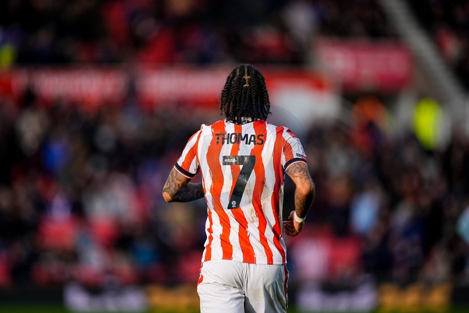 Sorba Thomas of Stoke City celebrates his goal to make it 2-0 during the Sky Bet Championship match Stoke City vs Swansea City at Bet365 Stadium, Stoke-on-Trent, United Kingdom, 13th December 2025, Credit:Maynard Manyowa/News Images / Avalon