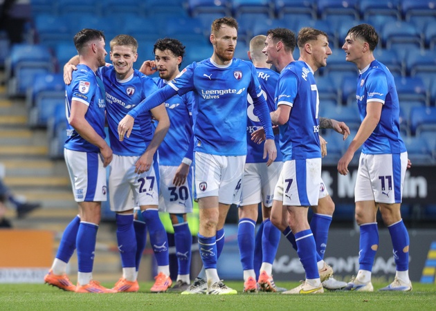Lee Bonis of Chesterfield celebrates his goal to make it 2-0 during the Sky Bet League 2 match Chesterfield vs Barnet at SMH Group Stadium, Chesterfield, United Kingdom, 13th December 2025, Credit:Richard Bierton/News Images / Avalon