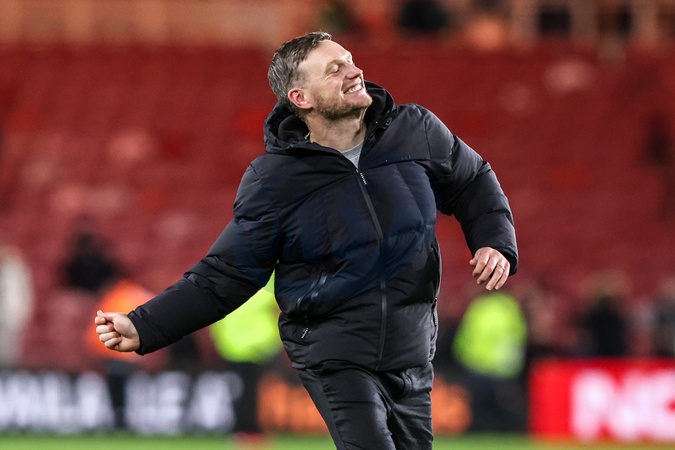 Kim Hellberg manager of Middlesbrough celebrates the win with the fans after the game during the Sky Bet Championship match Middlesbrough vs Queens Park Rangers at Riverside Stadium, Middlesbrough, United Kingdom, 13th December 2025, Credit:Ae Cosgrove/News Images / Avalon