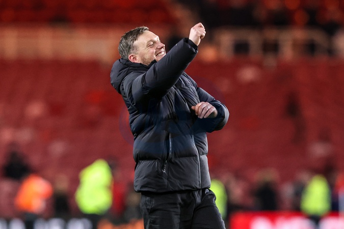 Kim Hellberg manager of Middlesbrough celebrates the win with the fans after the game during the Sky Bet Championship match Middlesbrough vs Queens Park Rangers at Riverside Stadium, Middlesbrough, United Kingdom, 13th December 2025, Credit:Ae Cosgrove/News Images / Avalon