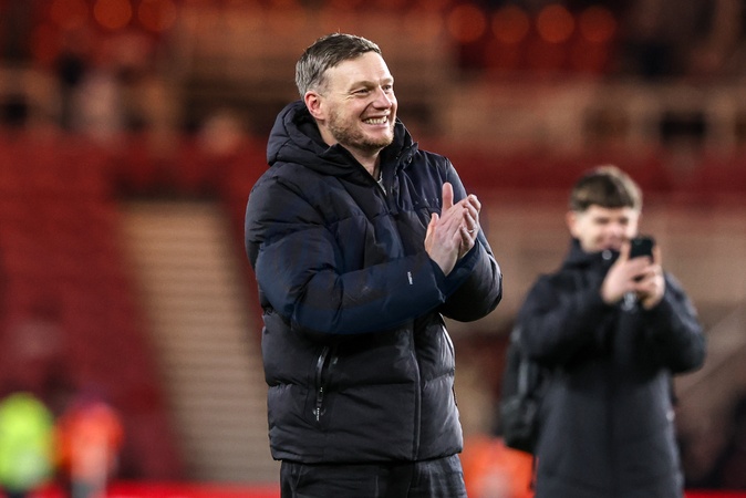 Kim Hellberg manager of Middlesbrough celebrates the win with the fans after the game during the Sky Bet Championship match Middlesbrough vs Queens Park Rangers at Riverside Stadium, Middlesbrough, United Kingdom, 13th December 2025, Credit:Ae Cosgrove/News Images / Avalon