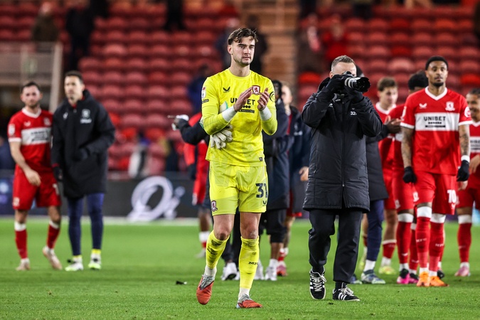 Middlesbrough goalkeeper Sol Brynn applauds the fans after the game during the Sky Bet Championship match Middlesbrough vs Queens Park Rangers at Riverside Stadium, Middlesbrough, United Kingdom, 13th December 2025, Credit:Ae Cosgrove/News Images / Avalon