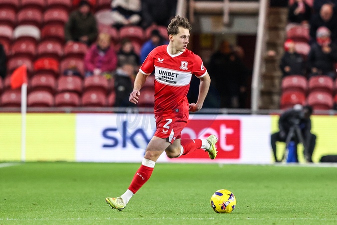Callum Brittain of Middlesbrough breaks with the ball during the Sky Bet Championship match Middlesbrough vs Queens Park Rangers at Riverside Stadium, Middlesbrough, United Kingdom, 13th December 2025, Credit:Ae Cosgrove/News Images / Avalon