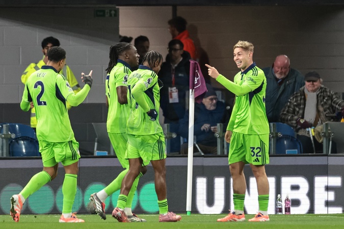 Emile Smith Rowe of Fulham celebrates his goal to make it 0-1 celebrates his goal to make it during the Premier League match Burnley vs Fulham at Turf Moor, Burnley, United Kingdom, 13th December 2025, Credit:Mark Cosgrove/News Images / Avalon