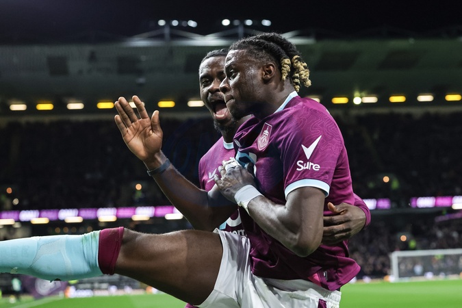 Lesley Ugochukwu of Burnley celebrates his goal to make it 1-1 during the Premier League match Burnley vs Fulham at Turf Moor, Burnley, United Kingdom, 13th December 2025, Credit:Mark Cosgrove/News Images / Avalon