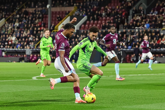 Lyle Foster of Burnley crosses the ball during the Premier League match Burnley vs Fulham at Turf Moor, Burnley, United Kingdom, 13th December 2025, Credit:Mark Cosgrove/News Images / Avalon