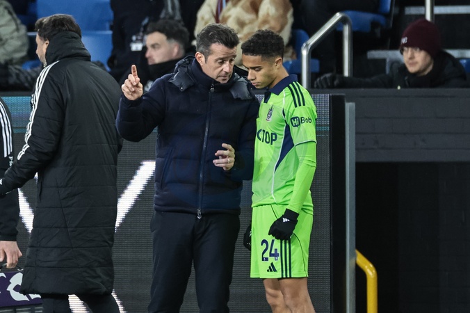 Marco Silva manager of Fulham gives instruction to Joshua King of Fulham as he prepares to come on during the Premier League match Burnley vs Fulham at Turf Moor, Burnley, United Kingdom, 13th December 2025, Credit:Mark Cosgrove/News Images / Avalon