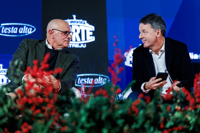 Atreju 2025, Brothers of Italy party, "The Season of Reforms" meeting. Pictured are Matteo Renzi, Secretary of the Democratic Party, and Fabio Rampelli, Vice President of the Chamber of Deputies. Rome, Italy 13 December 2025, Credit:Francesco Fotia / Avalon
