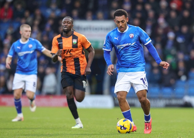 Lewis Gordon of Chesterfield in action during the Sky Bet League 2 match Chesterfield vs Barnet at SMH Group Stadium, Chesterfield, United Kingdom, 13th December 2025, Credit:Richard Bierton/News Images / Avalon