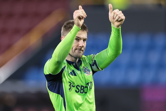 Joachim Andersen of Fulham gives the traveling fans the thumbs up during the Premier League match Burnley vs Fulham at Turf Moor, Burnley, United Kingdom, 13th December 2025, Credit:Mark Cosgrove/News Images / Avalon