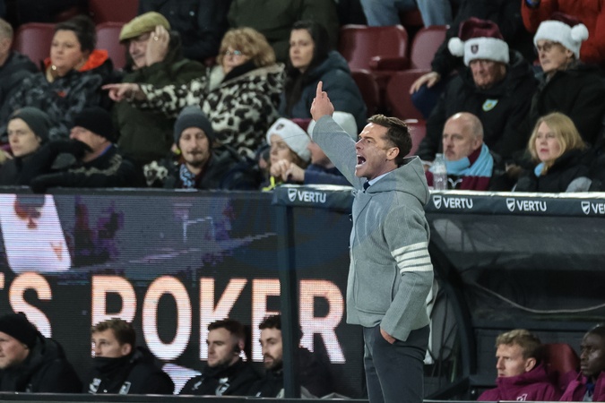 Scott Parker manager of Burnley reacts in the technical area during the Premier League match Burnley vs Fulham at Turf Moor, Burnley, United Kingdom, 13th December 2025, Credit:Mark Cosgrove/News Images / Avalon