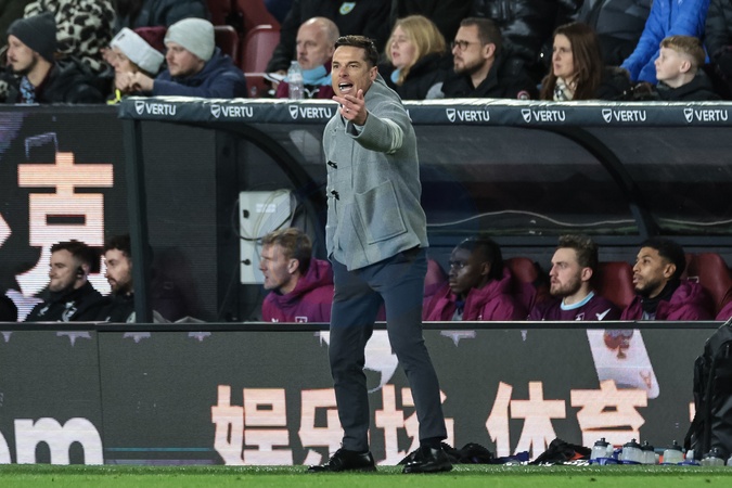 Scott Parker manager of Burnley reacts in the technical area during the Premier League match Burnley vs Fulham at Turf Moor, Burnley, United Kingdom, 13th December 2025, Credit:Mark Cosgrove/News Images / Avalon