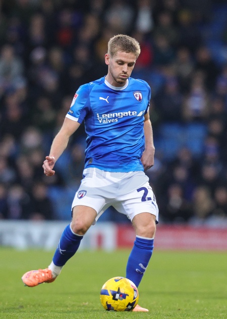 Ronan Darcy of Chesterfield passes the ball during the Sky Bet League 2 match Chesterfield vs Barnet at SMH Group Stadium, Chesterfield, United Kingdom, 13th December 2025, Credit:Richard Bierton/News Images / Avalon